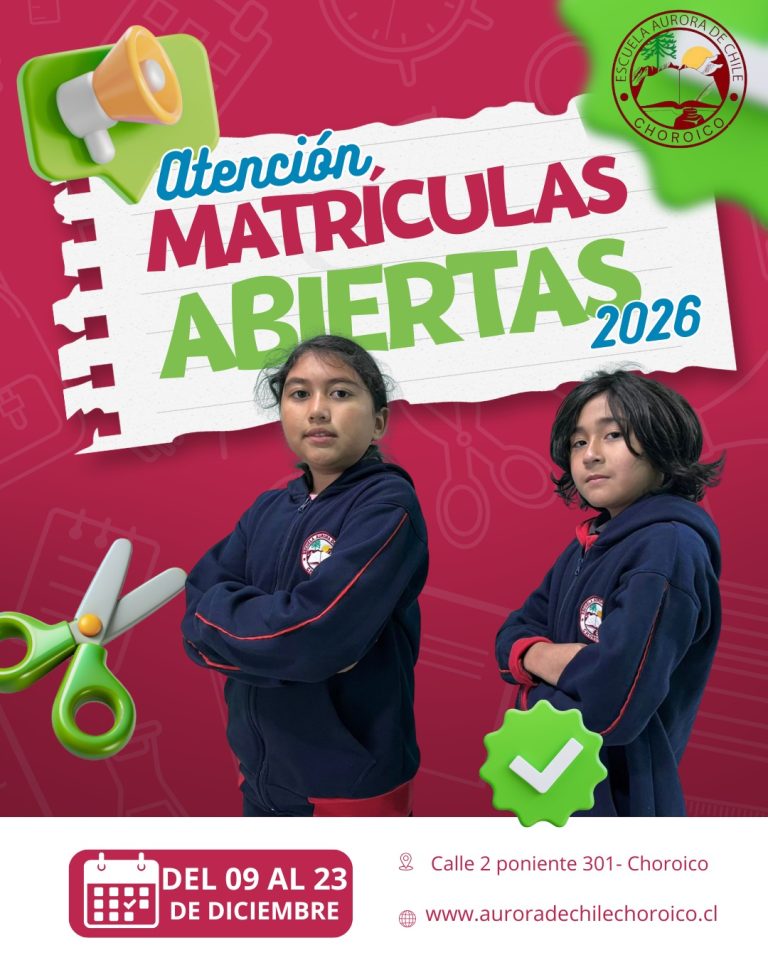 Escuela Aurora de Chile Choroico abre proceso de matrículas 2026 La Escuela Aurora de Chile de Choroico informa…